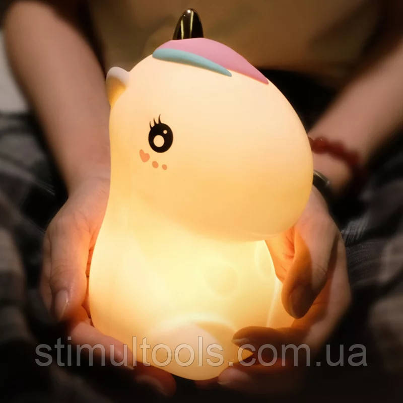 Бездротовий унікальний силіконовий нічник/світильник у формі забавного Єдинорога сподобається кожній дитині і навіть дорослому! М'який і приємний на дотик нічник стане найкращим подарунком для вашої дитини. Приглушене світло створить атмосферу затишку і тепла в дитячій. Він послужить прекрасною прикрасою для кімнати. Нічник не боїться води, його можна м'яти, гнути, не ламається і за секунди повертає свою форму. Зручне сенсорне управління - зміна кольору світіння при одному дотику. Повторний бавовна по нічника дозволяє запустити пульсуючий режим зміни тональності кольорів - 7 кольорів! Виготовлений з безпечного м'якого силікону, не нагрівається, тому дитина може спокійно використовувати його як іграшку.
